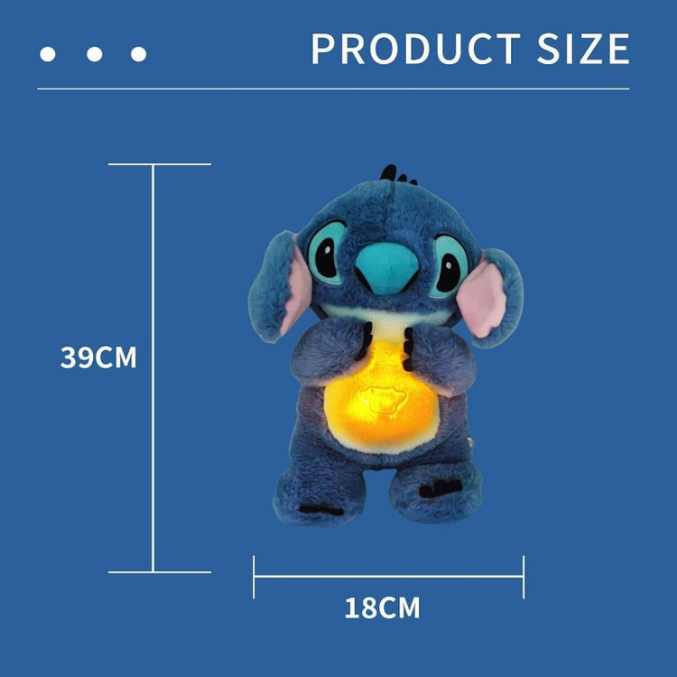 عروسک استیچ تنفسی و پمپی موزیکال 4 حالته ارتفاع 35 سانتیمتر