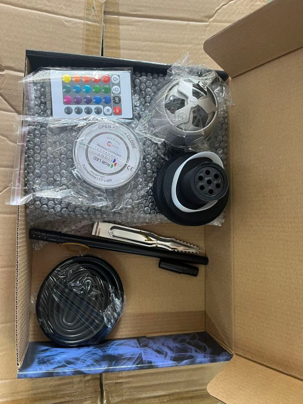 - اقلام داخل جعبه : ریموت کنترل - RGB لایت- انبر ذغال _ شلنگ قلیون
