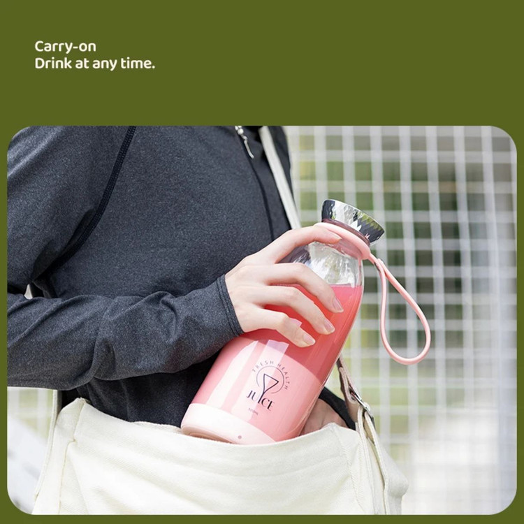 مخلوط کن قابل حمل مدل 500 میلی لیتر دستگاهی زیبا و کاربردی است که طراحی آن به شکل یک بطری آب با درپوش و دسته است. کمپانی سازنده این وسیله را در ابعادی معادل 22.5x9.2x9.2 سانتیمتر و وزن 741 گرم ساخته است. همچنین بدنه این مدل بلندر Fresh Juice از جنس پلاستیک مات ABS در رنگ های سفید، صورتی و مشکی به همراه فلز کروم است. در حالی که قسمت شیشه مانند این محصول جنسی از شیشه مقاوم و ضد خش دارد. این بطری همچنین یک بند سیلیکونی مایع دارد که به واسطه نرم و انعطاف پذیر بودن امکان جابجایی و حمل مخلوط کن را به آسانی فراهم می سازد. در ضمن این مدل آبمیوه گیری به راحتی خاموش و روشن می شود. در واقع تنها کافی است که شما شیکر را برعکس کرده و میوه های دلخواه و یخ را داخل مخزن 500 میلی لیتری آن بریزید. در نهایت پس از فشار دادن دکمه روشن و خاموش روی بدنه دستگاه، آب میوه و سبزیجات شما در سریعترین زمان ممکن آماده خواهد شد. دقت داشته باشید که سطح مواد و مایعات ریخته شده در بطری از خط نشان داده شده روی بدنه آن بالاتر نرود. این امر موجب افزایش طول عمر لوازم خانگی و یکدستتر شدن بافت نوشیدنی خواهد شد. قفل امنیتی تعبیه شده در این وسیله نیز امکان بروز هرگونه نشت نوشیدنی را در هنگام جابجایی آن غیرممکن می سازد. بدین ترتیب، شما به راحتی می توانید مخلوط کن و اسموتی ساز Fresh Juice Portable Blender 500ML را درون کیف قرار دهید. در این صورت، در هر مکانی از جمله محل کار و باشگاه می توانید از نوشیدن یک لیوان آب میوه تازه و دلچسب لذت ببرید.